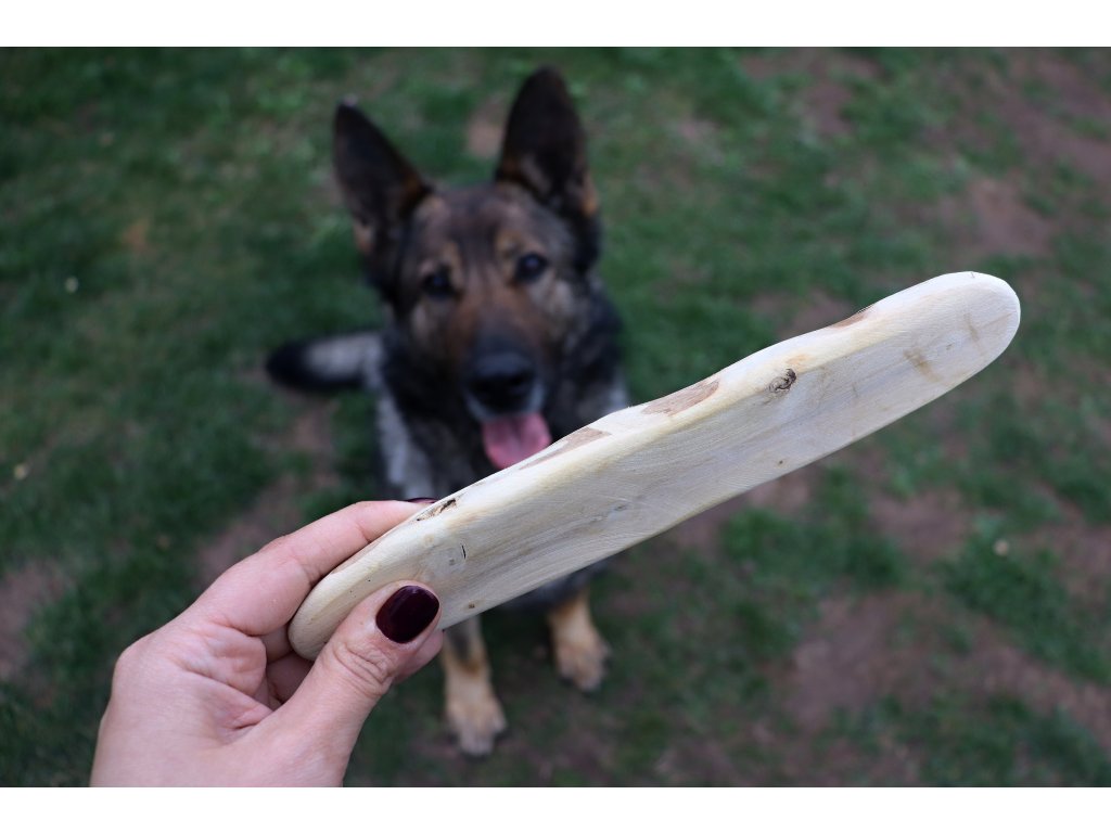 Es ist ein sicheres Holz, von dem keine gefährlichen Splitter abbrechen. Es ist weich genug und schadet den Zähnen nicht. Das glatte und abgerundete Holz kann nicht im Hals stecken bleiben.
