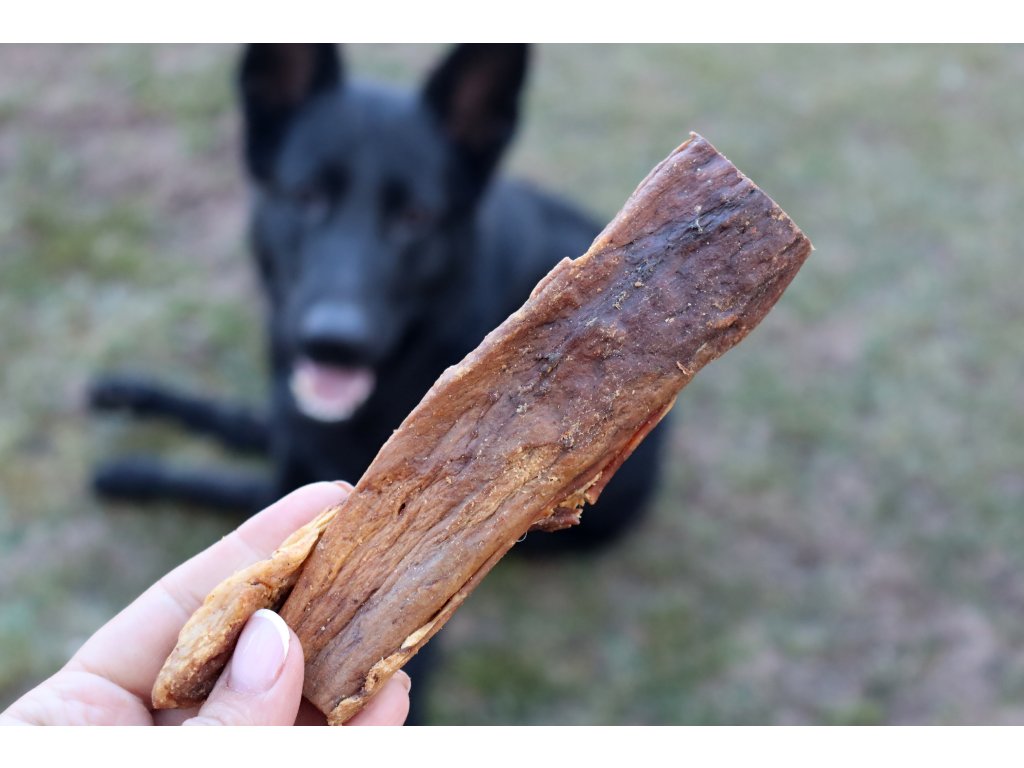 Beschäftigung und Genuss zugleich – mittelharter Kausnack, auch für Hunde geeignet, die Schweine- oder Rinderohren nicht zerkauen können.