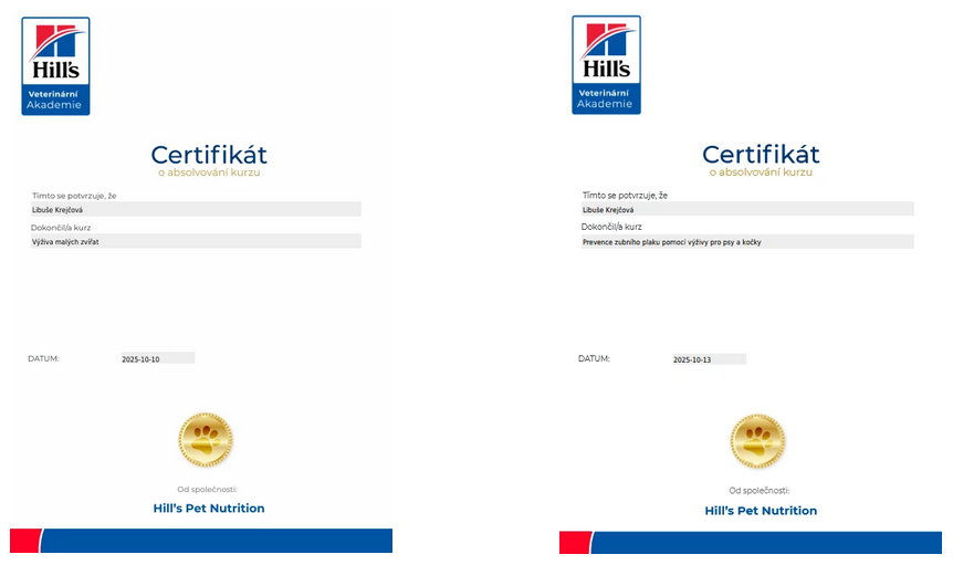 Kromě znalostí získaných studiem se již několik let věnuji výživě psů a koček a to hlavně se zaměřením výživy psů a nutričními odlišnostmi krmiva spojené s konkrétními nemocemi psů.